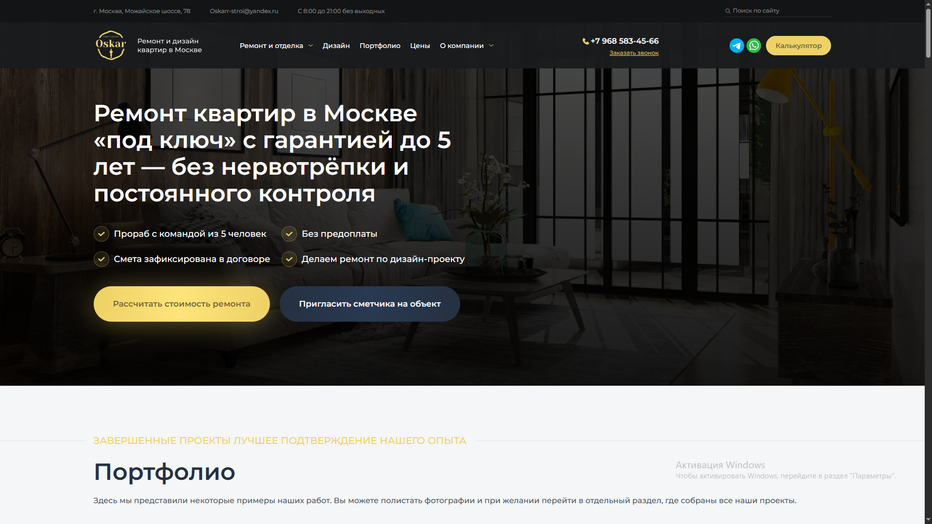 Реализовали адаптивный сайт с безупречной скоростью загрузки. Внедрили функционал для удобного представления портфолио: интерактивные галереи, фильтры по типу проекта и материала.