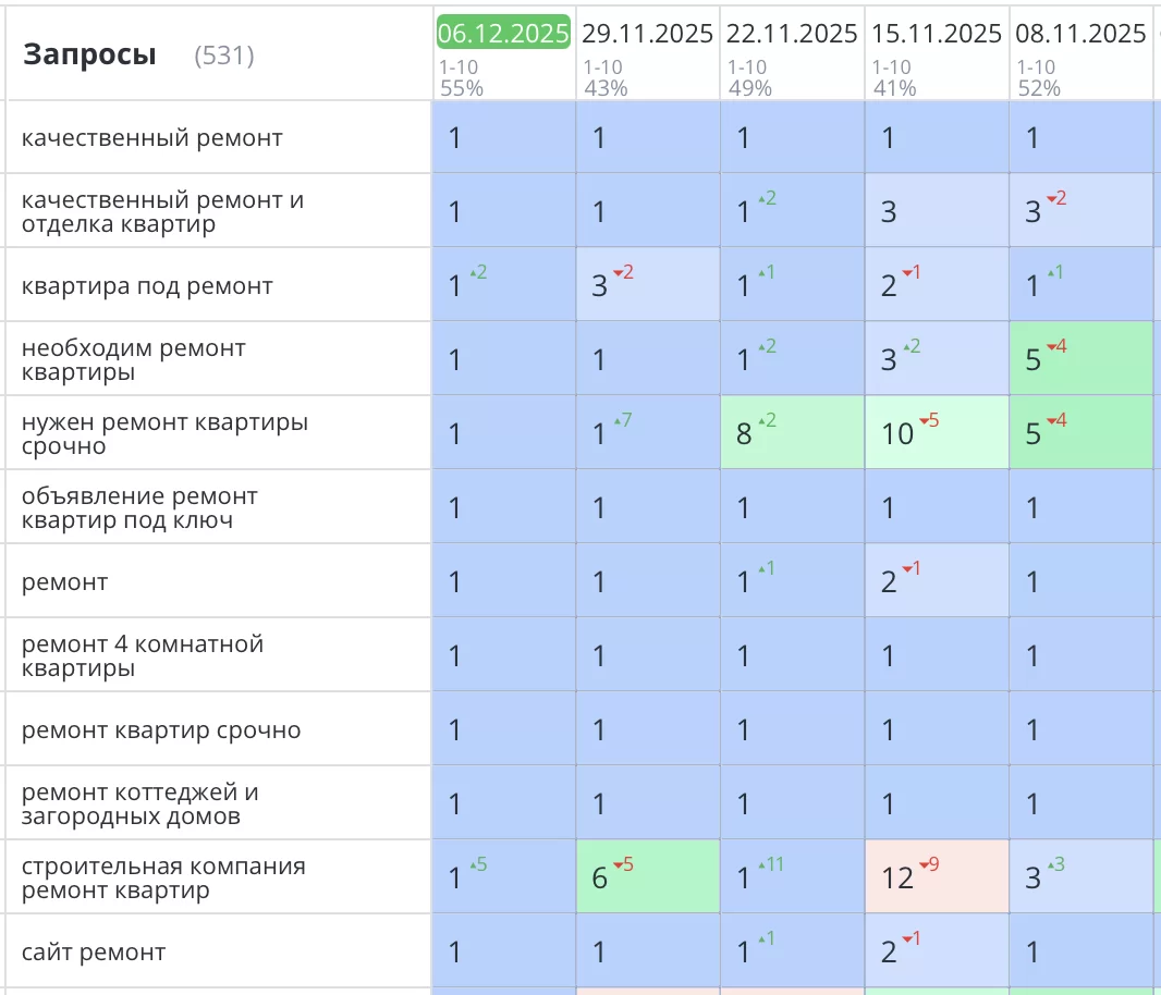 Даем результат в виде первых мест сайта в выдаче Яндекс