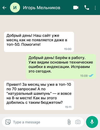 - Вывод в ТОП3 Яндекс 400 запросов для роста заявок и продаж.